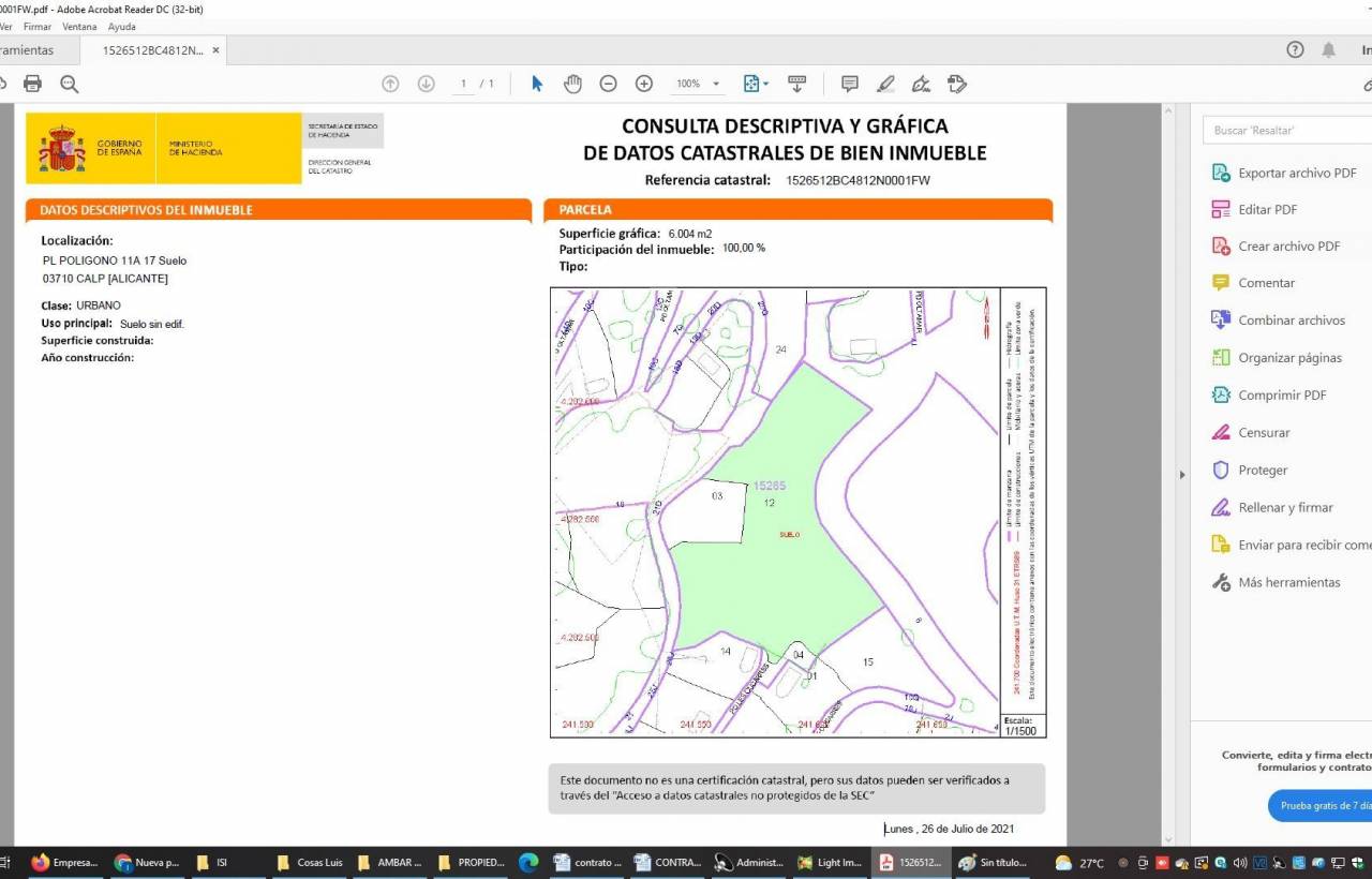 Grand terrain de 6000 m2 à Calpe (Costa blanca) avec vue sur la mer, situé à seulement 2,5 km de Calpe et de la plage. Sur ce terrain, vous pouvez construire 5-6 maisons individuelles, car il a une surface constructible de 1800 m2. Le terrain est raccordé à leau et à lélectricité. Un mur de soutènement a été construit, dune valeur de près de 50.000€.