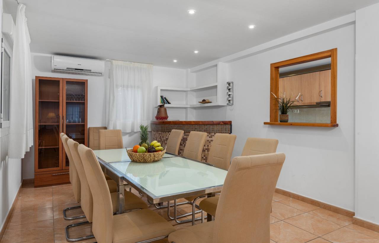 A vendre 2 villas et un terrain, l´ensemble du complexe étant mitoyen et à seulement 600m de la mer. Villa 1 : Découvrez la grandeur et le confort de notre spacieuse villa d´été à Calpe, Costa Blanca, conçue pour accueillir jusqu´à 14 personnes. Avec sept chambres et cinq salles de bains réparties sur deux étages, cette villa offre le cadre idéal pour des vacances mémorables. Intérieur spacieux et élégant : Au rez-de-chaussée, vous trouverez un salon-salle à manger avec bar ouvert, télévision SAT/TDT et accès à une terrasse couverte qui s´ouvre sur l´éblouissante piscine privée. La cuisine séparée entièrement équipée avec plaque vitrocéramique et lave-vaisselle fait de la préparation des repas un plaisir. De plus, le rez-de-chaussée abrite une chambre avec un lit double et une salle de bains séparée avec douche, ainsi qu´une autre chambre avec un lit double et une salle de bains attenante avec douche. L´étage supérieur comprend deux chambres à coucher avec lit double et une chambre à coucher avec deux lits simples, avec vue sur la piscine. Il y a deux salles de bains séparées, l´une avec douche et l´autre avec baignoire. En outre, deux autres chambres avec deux lits simples chacune, l´une d´entre elles avec une salle de bain attenante avec douche. Extérieur de rêve : L´extérieur de la villa vous surprendra avec une grande terrasse entourant la piscine 10x5, avec des marches romaines et une douche extérieure rafraîchissante. La piscine est entièrement clôturée pour assurer la sécurité des plus petits. Profitez de délicieux barbecues en plein air dans l´espace barbecue couvert intégré. Avec un espace de stationnement pour trois véhicules dans le garage et un terrain entièrement clos, l´intimité et le confort sont garantis. Villa 2 : Cette charmante villa de 6 chambres offre une combinaison parfaite de confort et de style, répartie sur deux étages avec six chambres et quatre salles de bains. L´air conditionné dans le salon confortable et dans toutes les chambres garantit un séjour frais et agréable. Le rez-de-chaussée vous accueille avec un salon-salle à manger lumineux équipé d´une télévision SAT/TDT, de l´air conditionné et d´un bar à petit-déjeuner pratique qui donne accès à la terrasse et à la piscine. La cuisine indépendante, entièrement équipée d´un lave-vaisselle et d´une plaque vitrocéramique, est l´endroit idéal pour préparer de délicieux repas. Deux chambres avec de confortables lits doubles et une salle de bains avec douche complètent ce niveau. L´ETAGE SUPERIEUR offre trois chambres à coucher avec deux lits simples chacune, deux d´entre elles avec une salle de bain attenante avec douche. En outre, une chambre avec un lit double et un espace avec une machine à laver pour plus de commodité. La grande piscine de 10 x 5, clôturée pour la sécurité des enfants et équipée de marches romaines et d´une douche extérieure, permet de s´amuser en plein air. Le barbecue intégré est parfait pour les repas en plein air, et le parking sur place pour 4 véhicules ajoute à la commodité. Terrain : 1655m de terrain constructible. Il y a 2 petits bâtiments (entrepôts) d´une superficie totale de 50m2 sur le terrain.