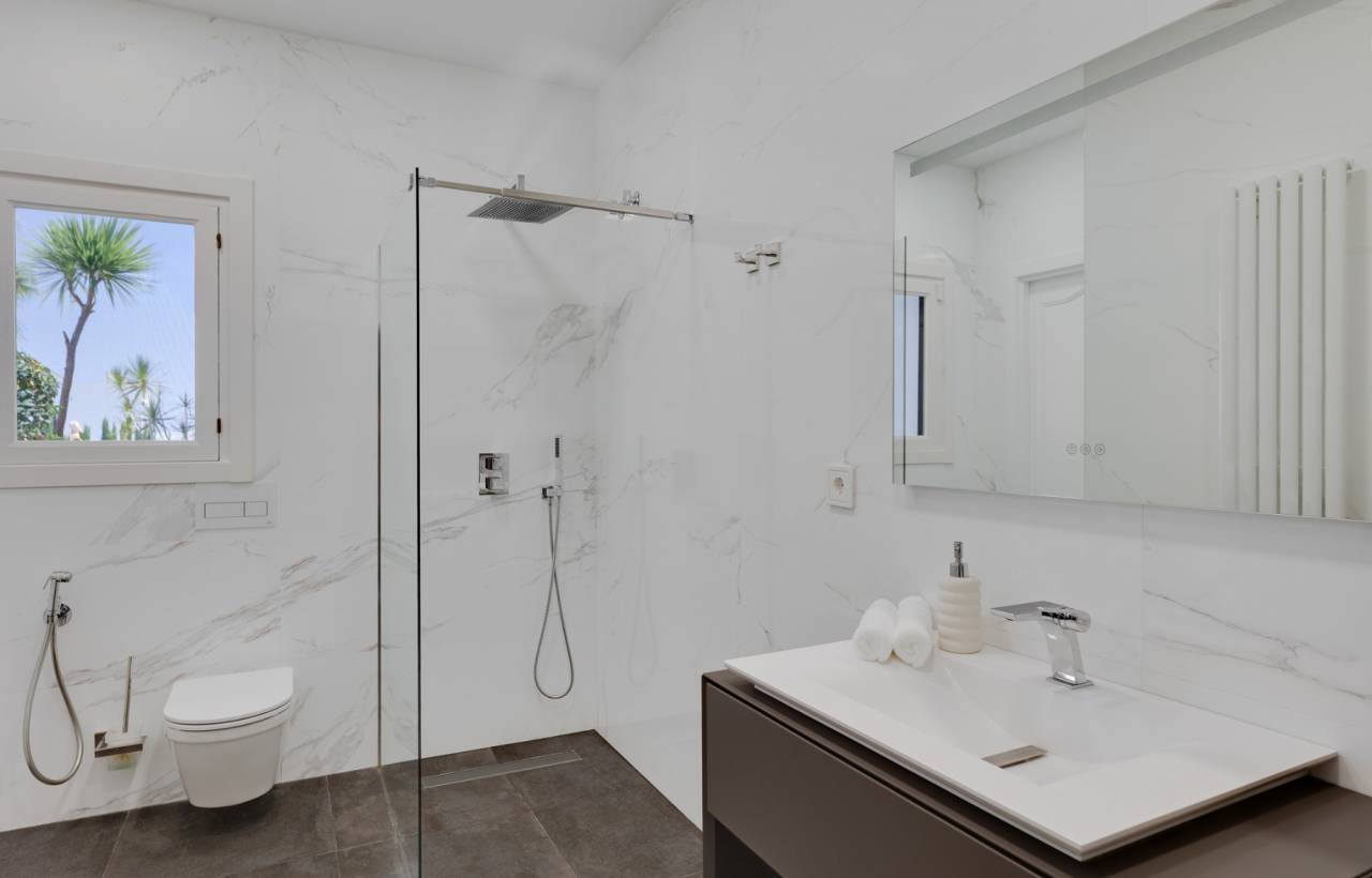 Beautiful luxurious family villa for sale, in one of the best urbanizations of Calpe. The villa is 10 minutes walk from the city of Calpe and 5 minutes walk from the local bus station. The property is located in one of the most popular areas of Calpe, due to its proximity to everything, while we have the feeling of living in the countryside. On the ground floor we find a large hall, two bedrooms, 1 bathroom, a huge kitchen with attached laundry, and a large living room with three separate sections. Through a marble and wooden staircase, we access the upper floor, which consists of three large bedrooms and two bathrooms, one of them en suite, on this floor we also find a small solarium. From almost every window of the house we have magnificent views of the sea and the Rock of Ifach. There is central heating and air conditioning throughout the house. In the main house we also find an authentic cellar, a garage and covered parking area.